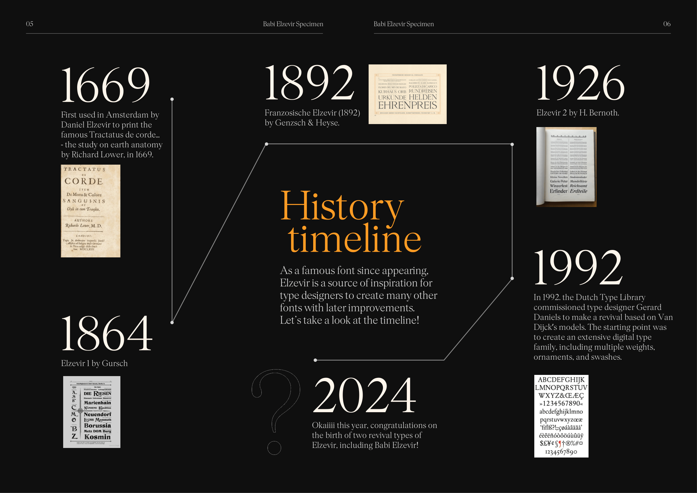 Elzevir first appeared in printed works in 1669 (some claim it dates back to 1662). The typeface was created by the punch cutter - Christoffel van Dijck - who is considered one of the greatest punch cutters of his time. Elzevir was used for many book in the Elzevir printing house and later became famous throughout Europe for its readability, even considered the most beautiful typeface of its time, while some others considered it as boring like Dutch people.