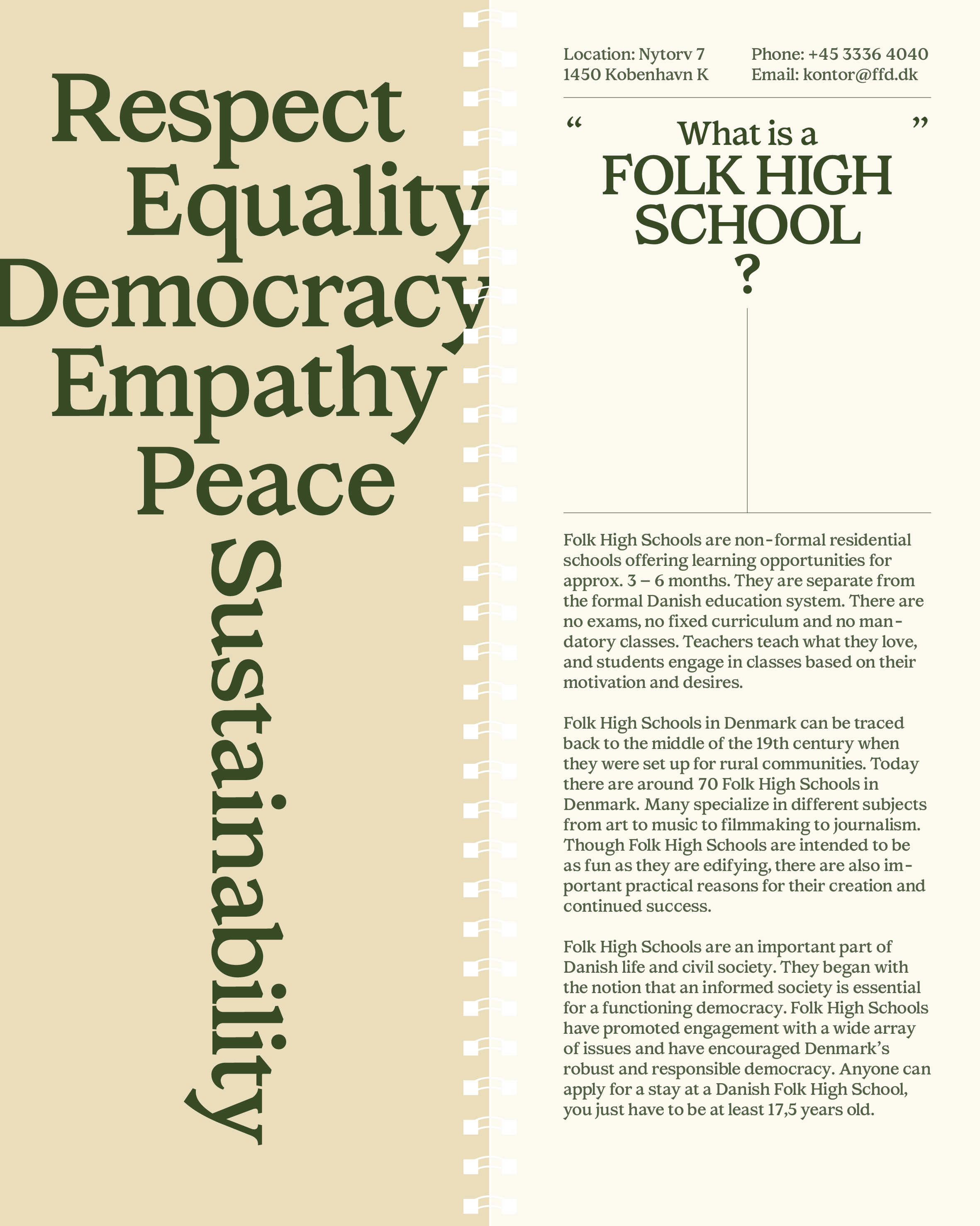 Folk High Schools are non-formal residential schools offering learning opportunities for approx. 3 – 6 months.