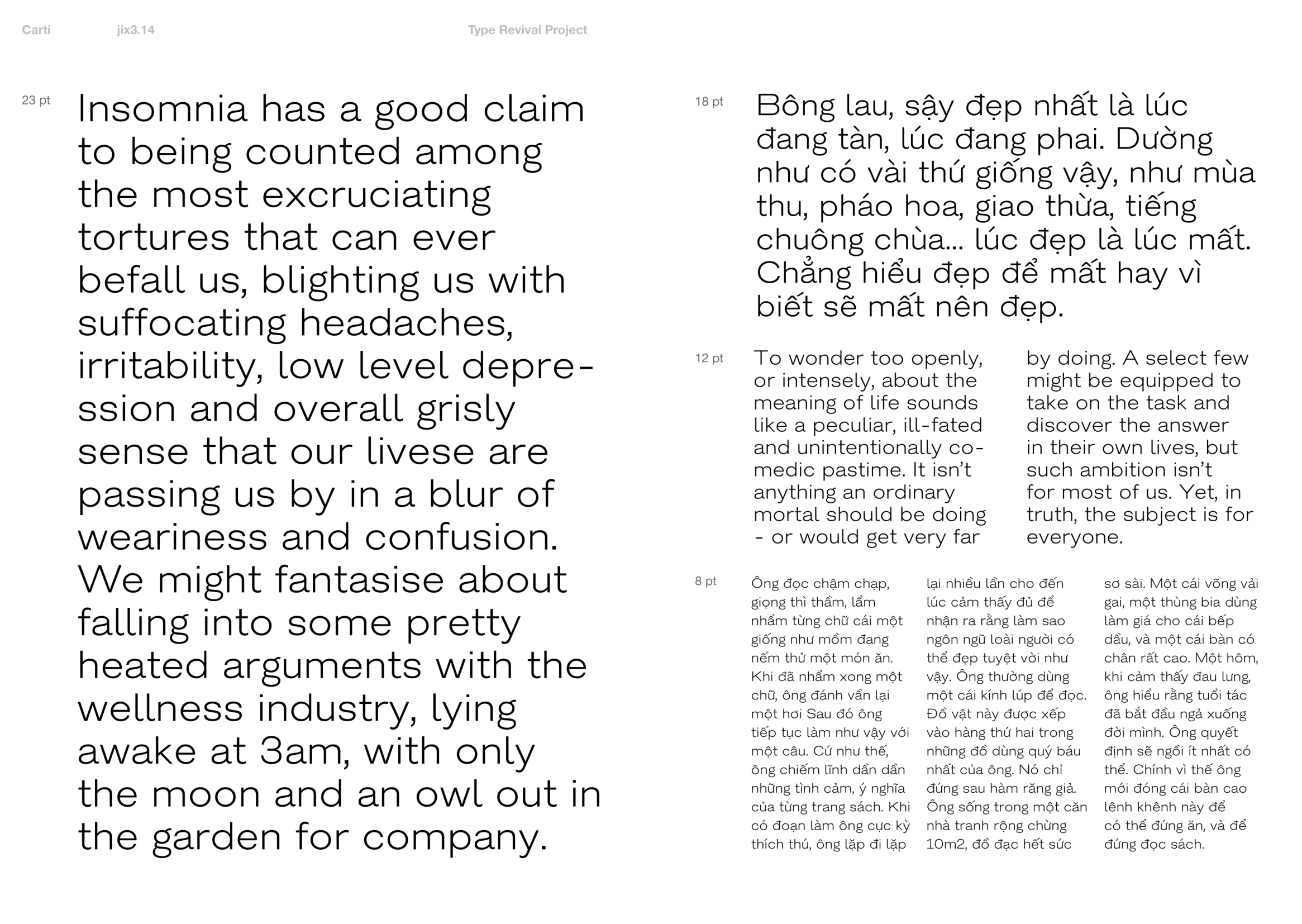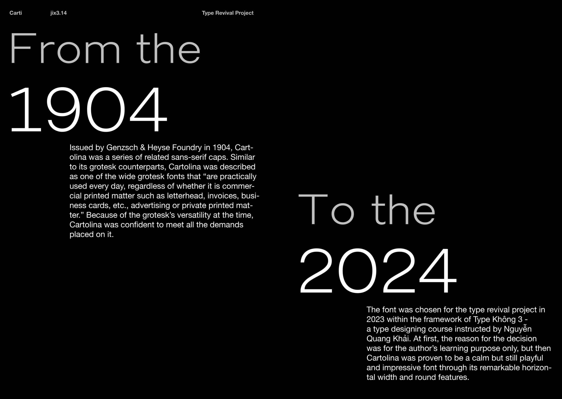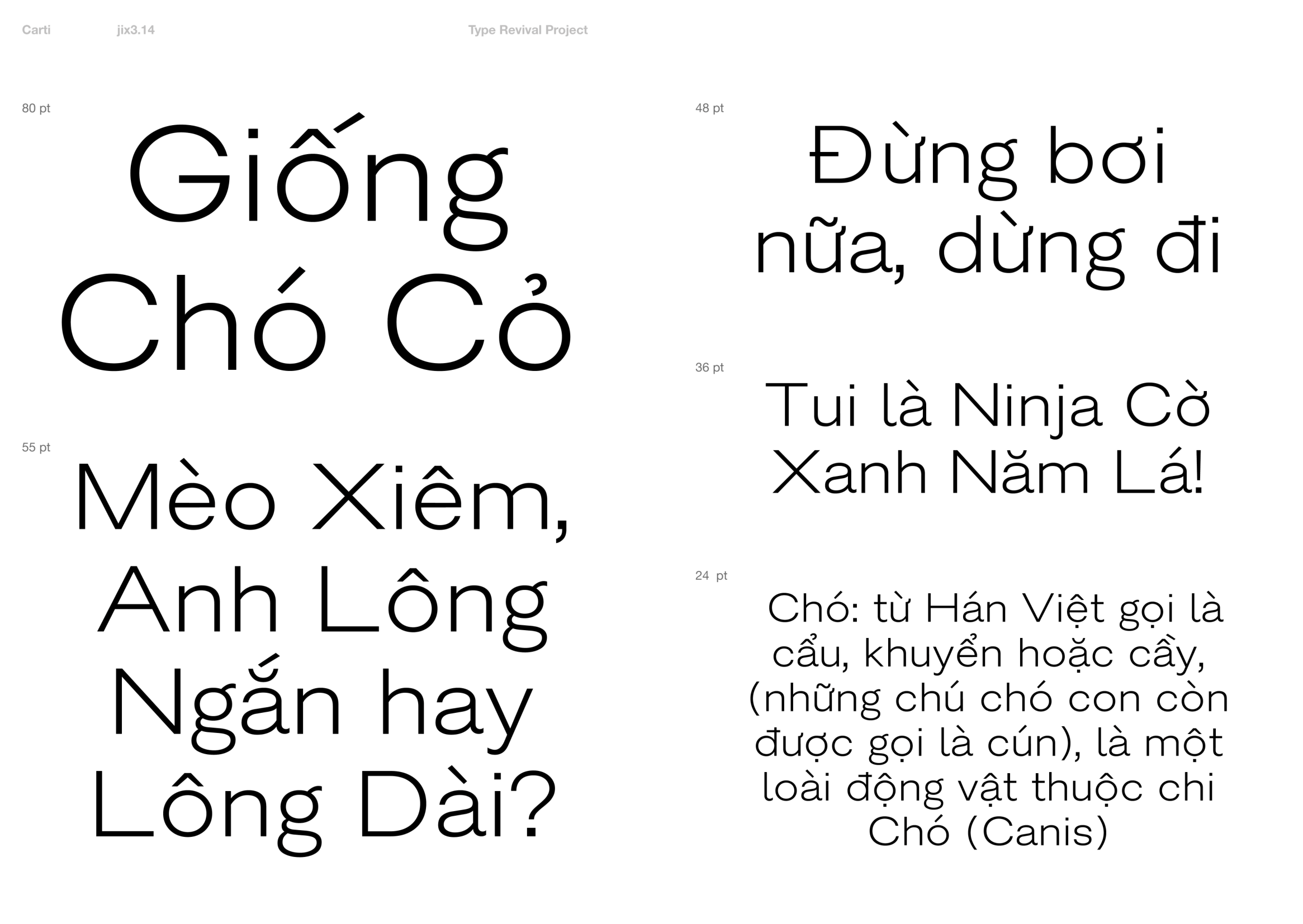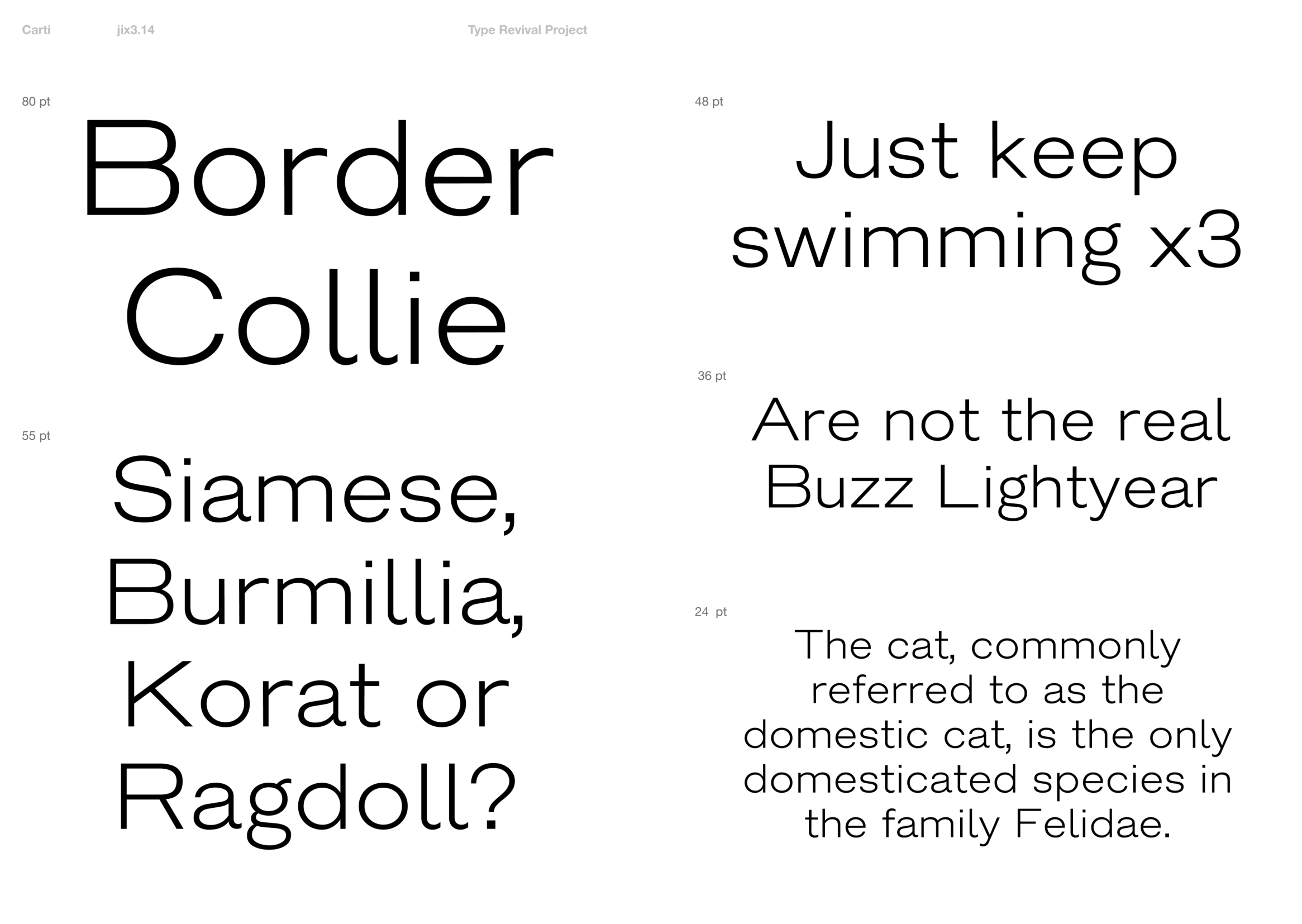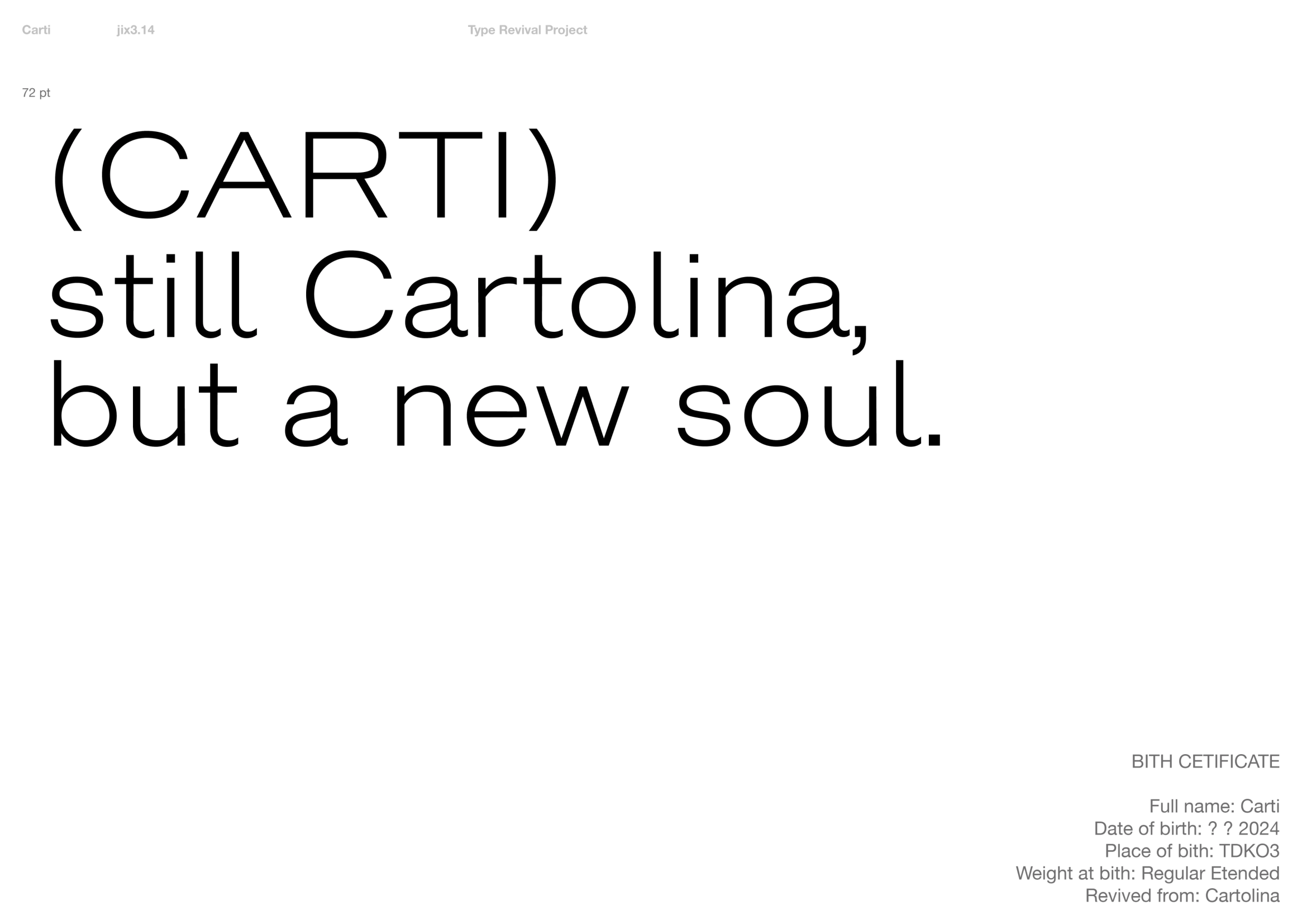 Về Carti: Phỏng theo Cartolina của Genzch & Heyse, Carti bè khuệnh khoạng hệt Montserrat. Cũng tròn nhưng nắn nót hơn và dù mới chỉ có một phông nhưng đã ăn đứt đàn anh về mọi mặt.