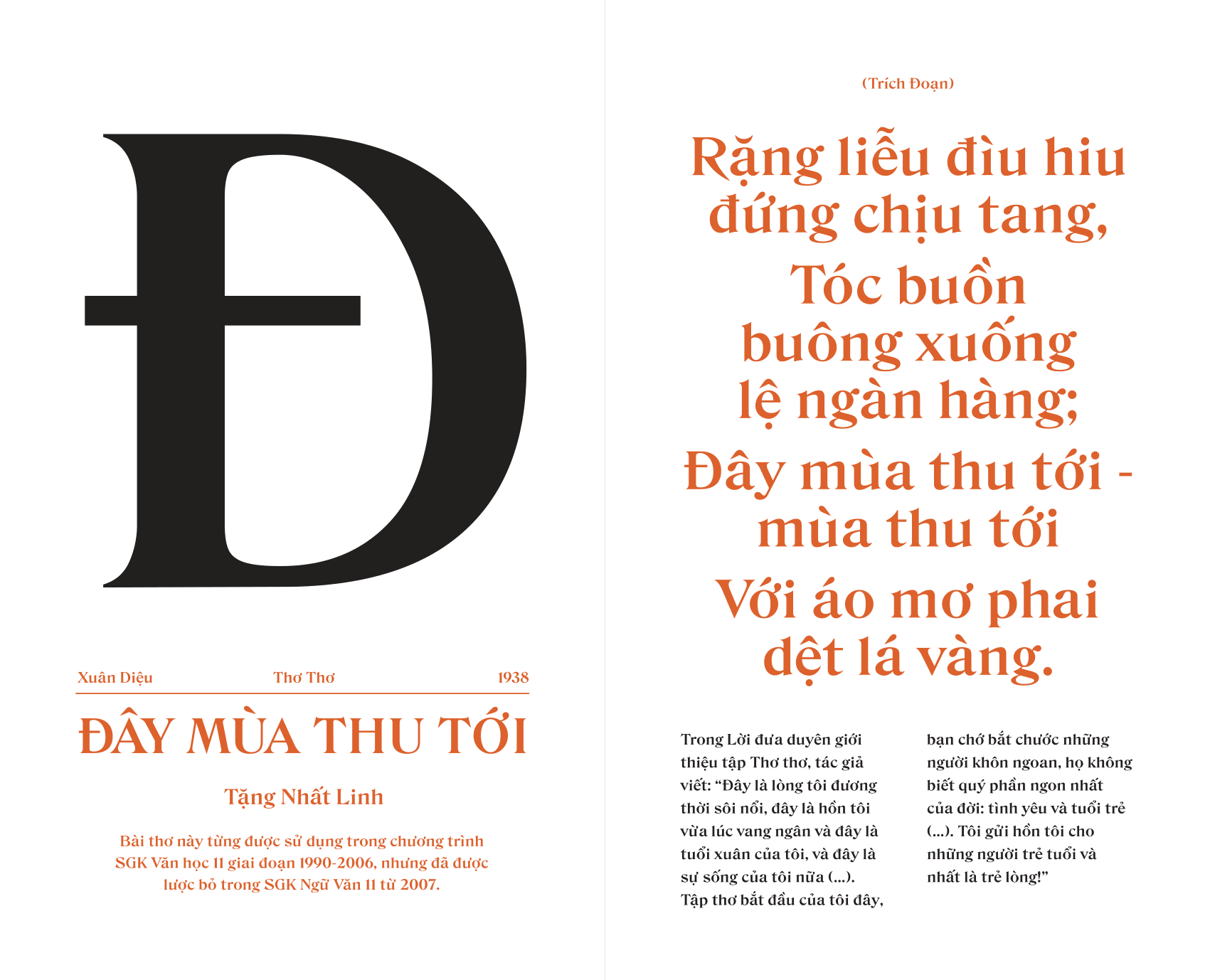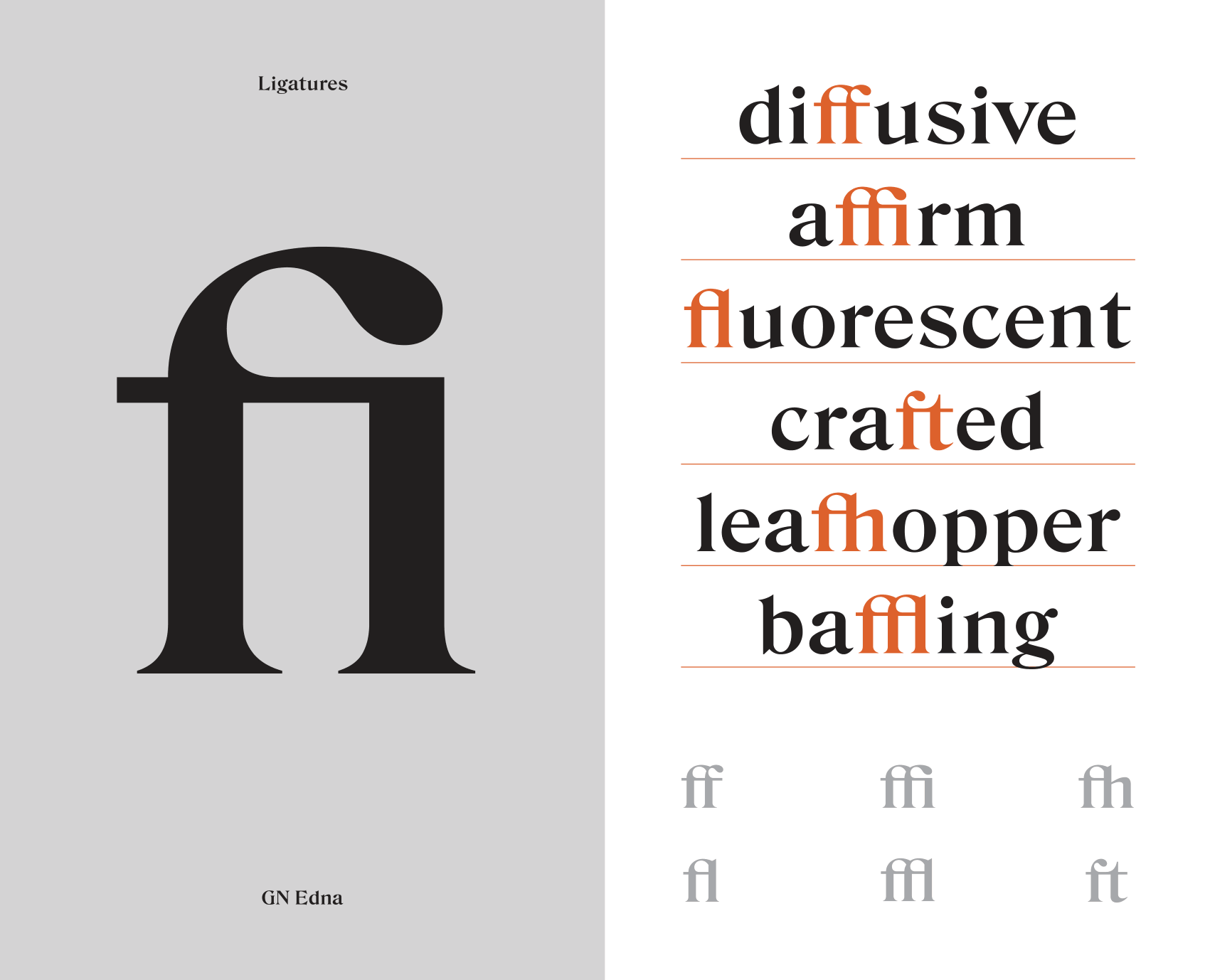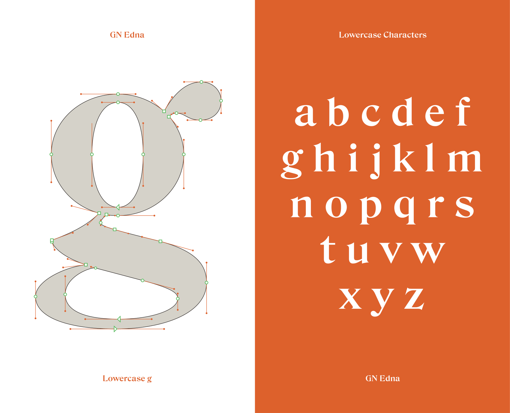Về GN Edna: Lấy cảm hứng từ De Vinne Lining, một kiểu chữ nổi tiếng được Central Type Foundry thiết kế cho De Vinne Press vào năm 1892, GN Edna là một phông serif chuyên display mang cá tính, quan điểm rõ ràng và đầy quyết đoán. GN Edna tái hiện thẩm mỹ thời Victoria cho cảm quan của hiện tại, đồng thời vẫn giữ được tinh thần của thiết kế nguyên bản. Kiểu chữ này khéo léo cân bằng giữa những góc cạnh sắc nét và các đường cong mềm mại, trở thành lựa chọn lý tưởng cho các thiết kế quảng cáo, biên tập và bao bì.