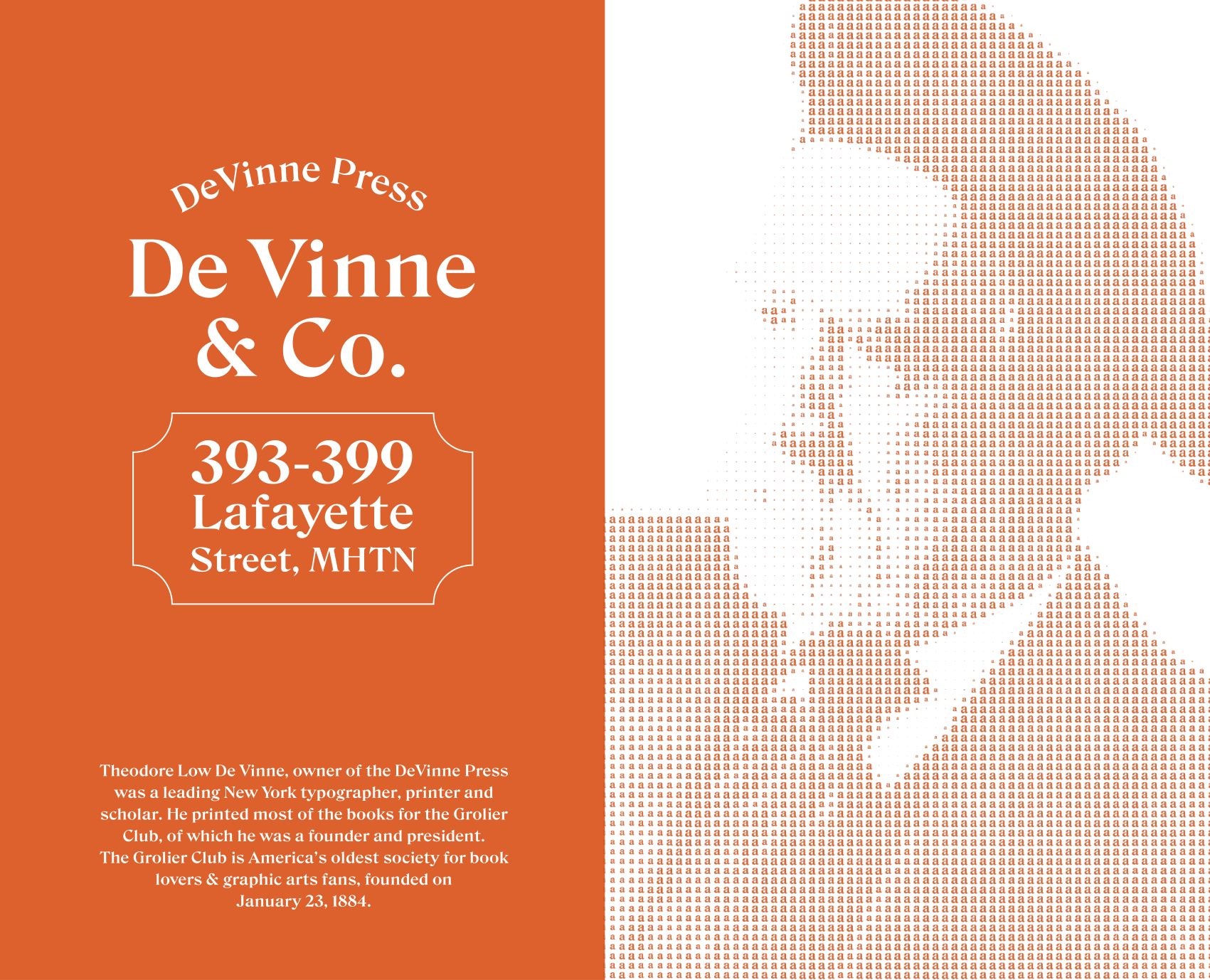 De Vinne Lining was a commission by the prestigious De Vinne Press to the Boston-based Central Type Foundry, with a brief to create a new typeface that responded to a “need of plainer types of display, to replace the profusely ornamented types in fashion”.