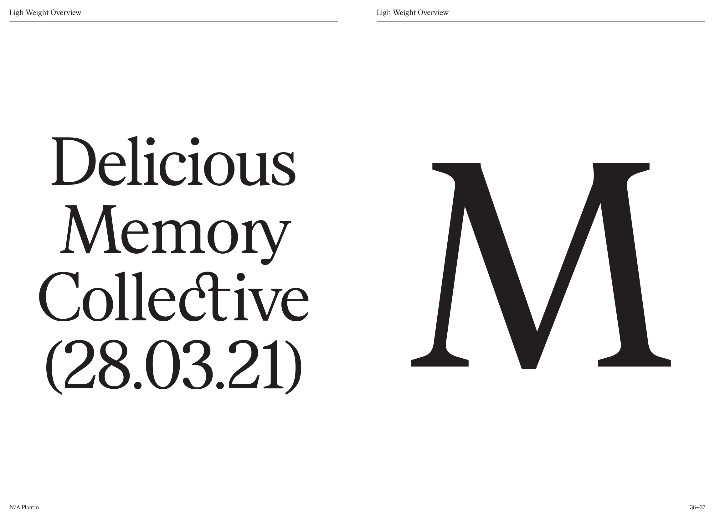 At first glance, N/A Plantin bares close resemblance to other contemporary transitional serifs: fairly tall proportions and even width from one character to another. With its low stroke contrast, the texture is quite lighter than other text type, making this a great option for display. In bigger sizes, N/A Plantin radiates such classic grace from adaptation of its source reference. What molds the identity of N/A Plantin is its contemporary approach with chopped eyedrops and smoother stem-to-serif transition. With all that makes N/A Plantin so unique of itself, this could suits a wide range of applications from logotype to publication in various industries thanks to its tender grace and great agility.