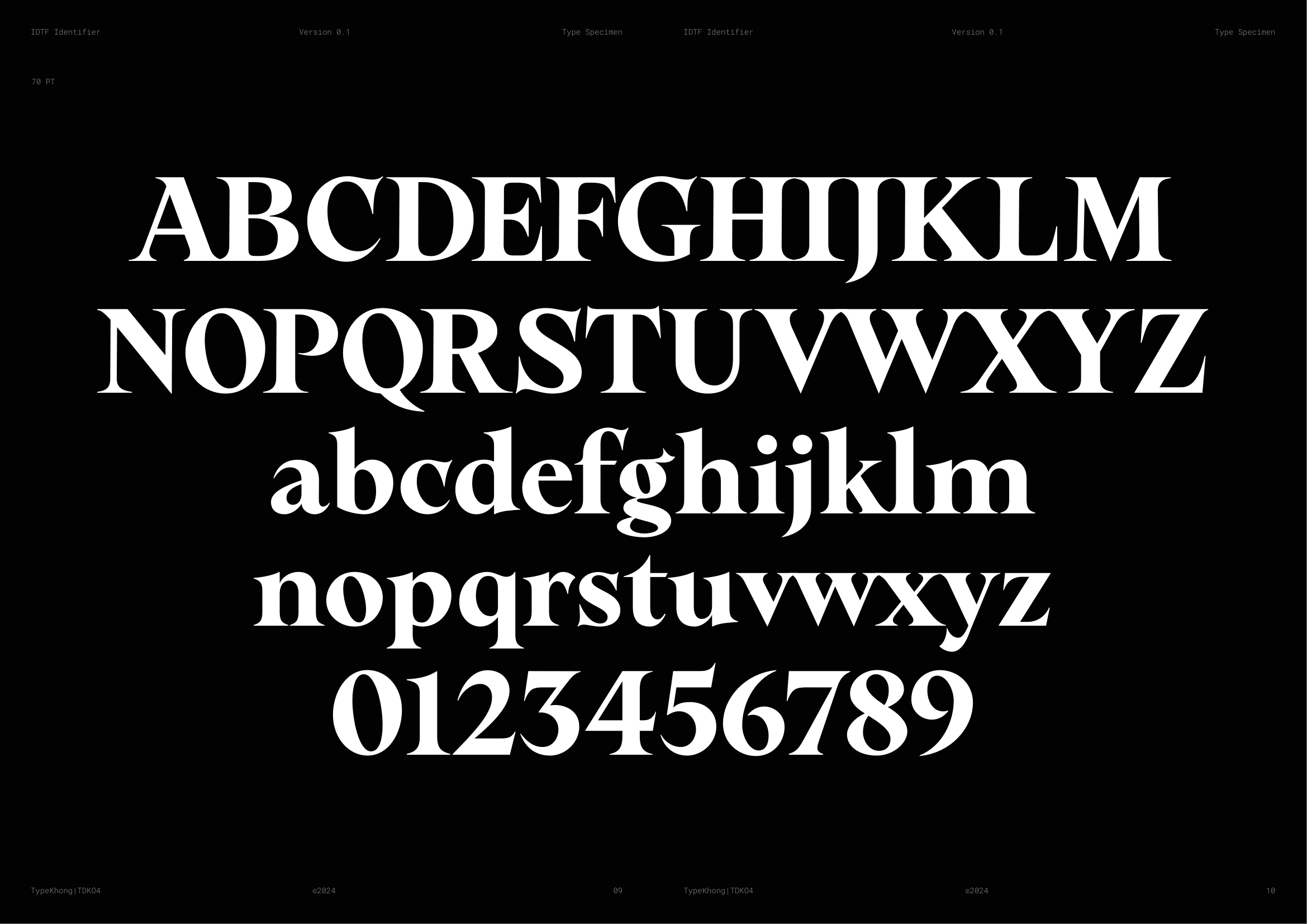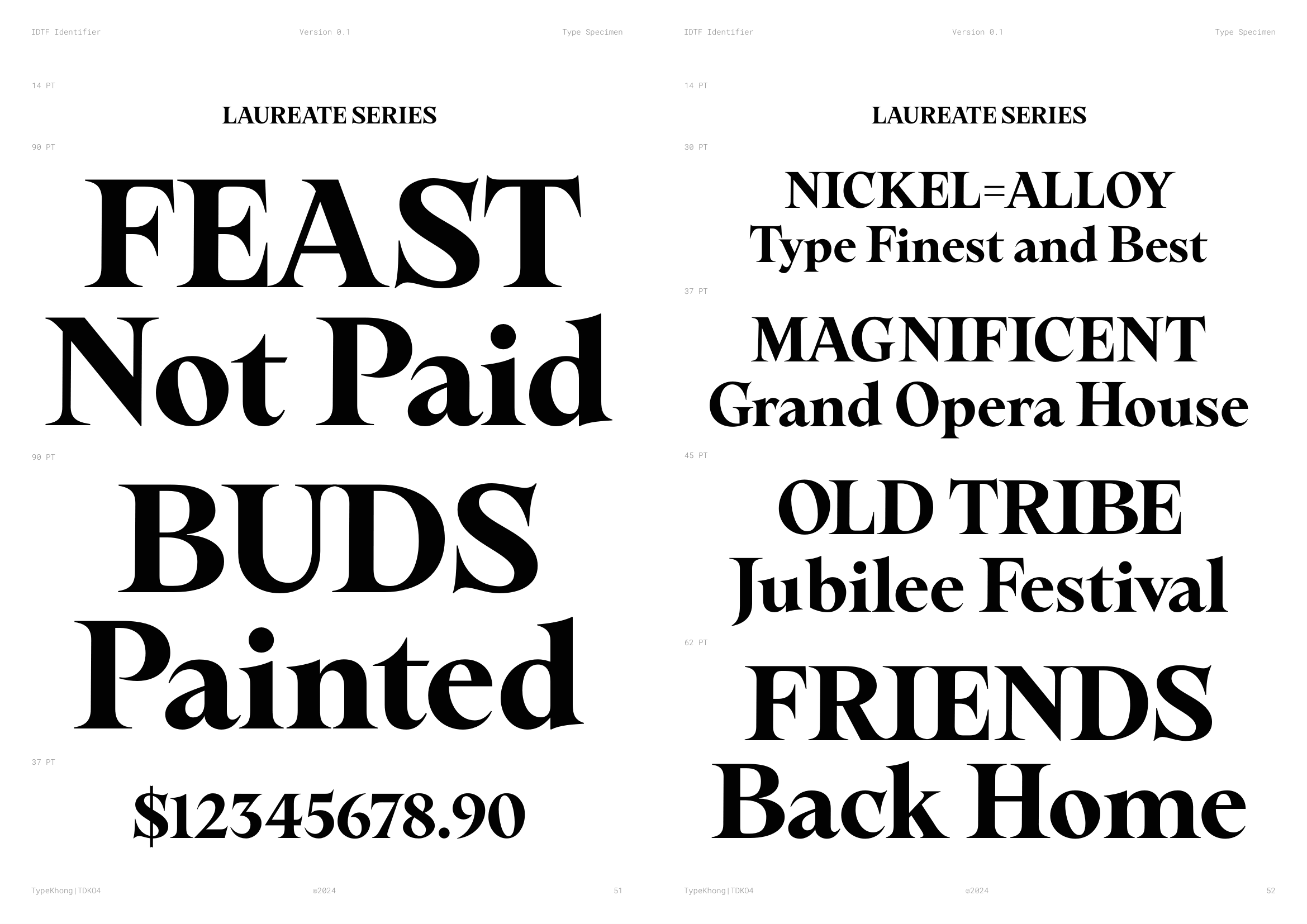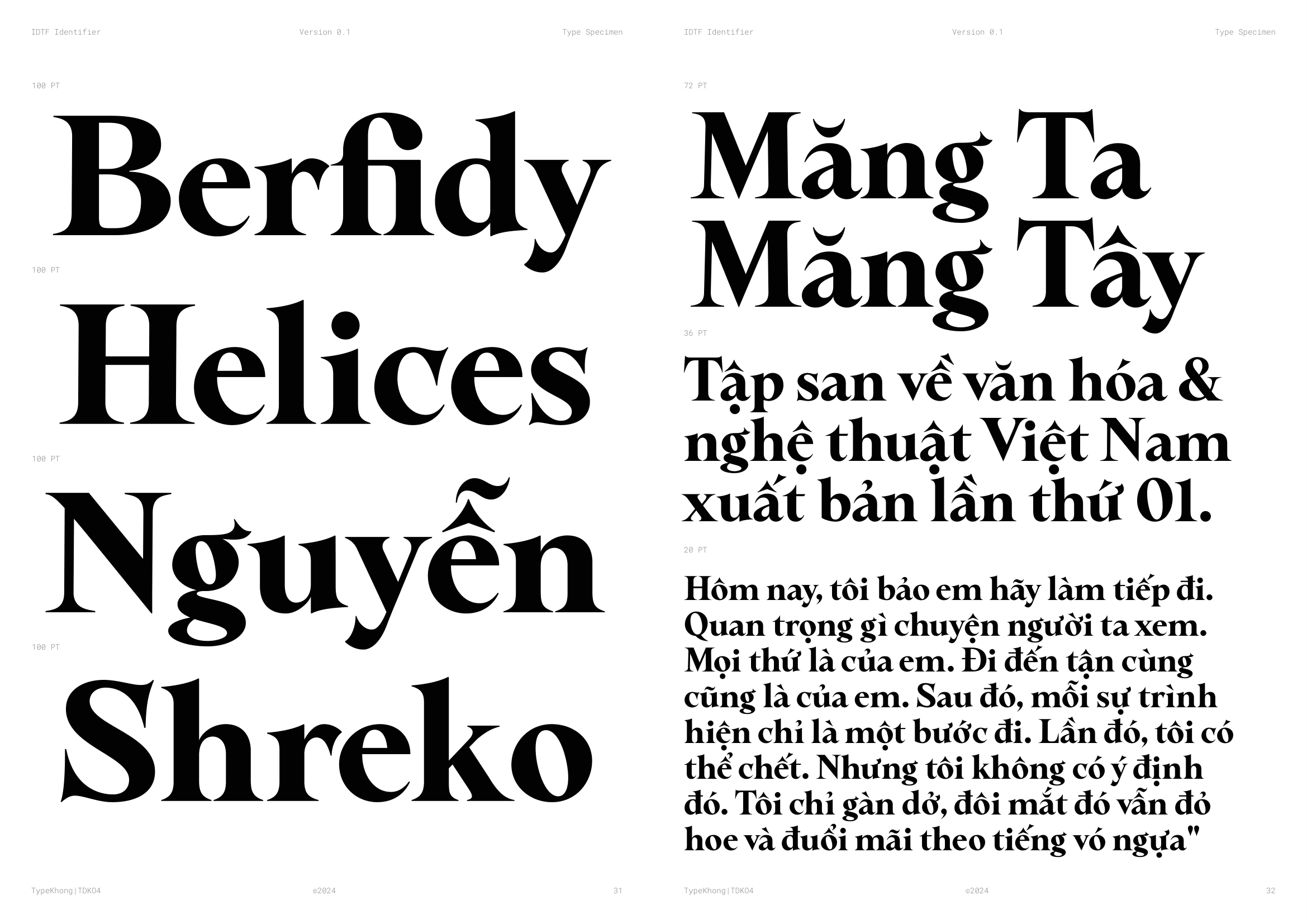 Về PKT Identifier: Identifier là một kiểu chữ phục dựng từ Laureate Bold, dòng transitional serif với dáng serif như ống loe. Laureate được khắc lần đầu bởi Keystone Type Foundry tại Philadelphia, PA, vào đầu những năm 1900, dùng cho các tiêu đề khổ lớn. Lấy cảm hứng từ những tiêu đề serif đậm, chặt chẽ của thời đại phóng khoáng ấy, Identifier ra đời với mục đích phục dựng bộ chữ, tinh chỉnh các nét, khắc phục những điểm yếu của font cũ. Sau đó bổ sung đầy đủ bộ dấu tiếng Việt theo cách sắc nét và nổi bật hơn.