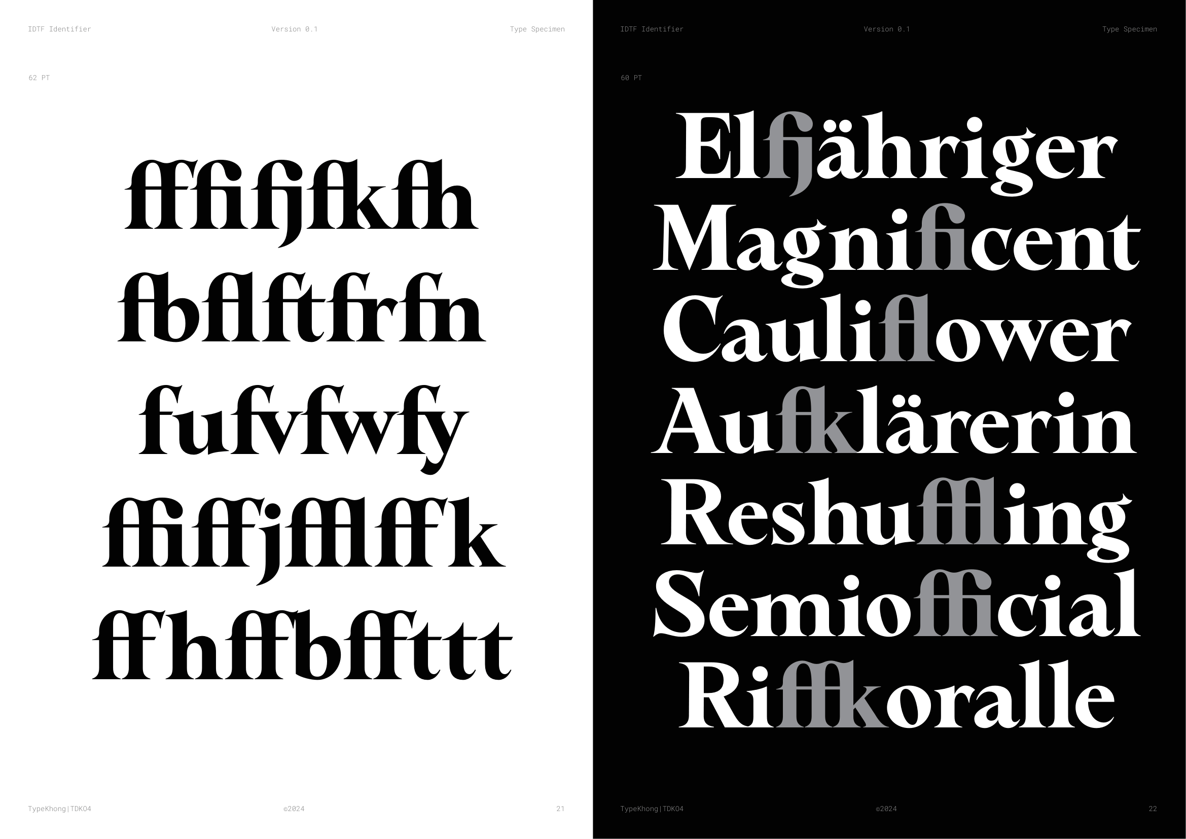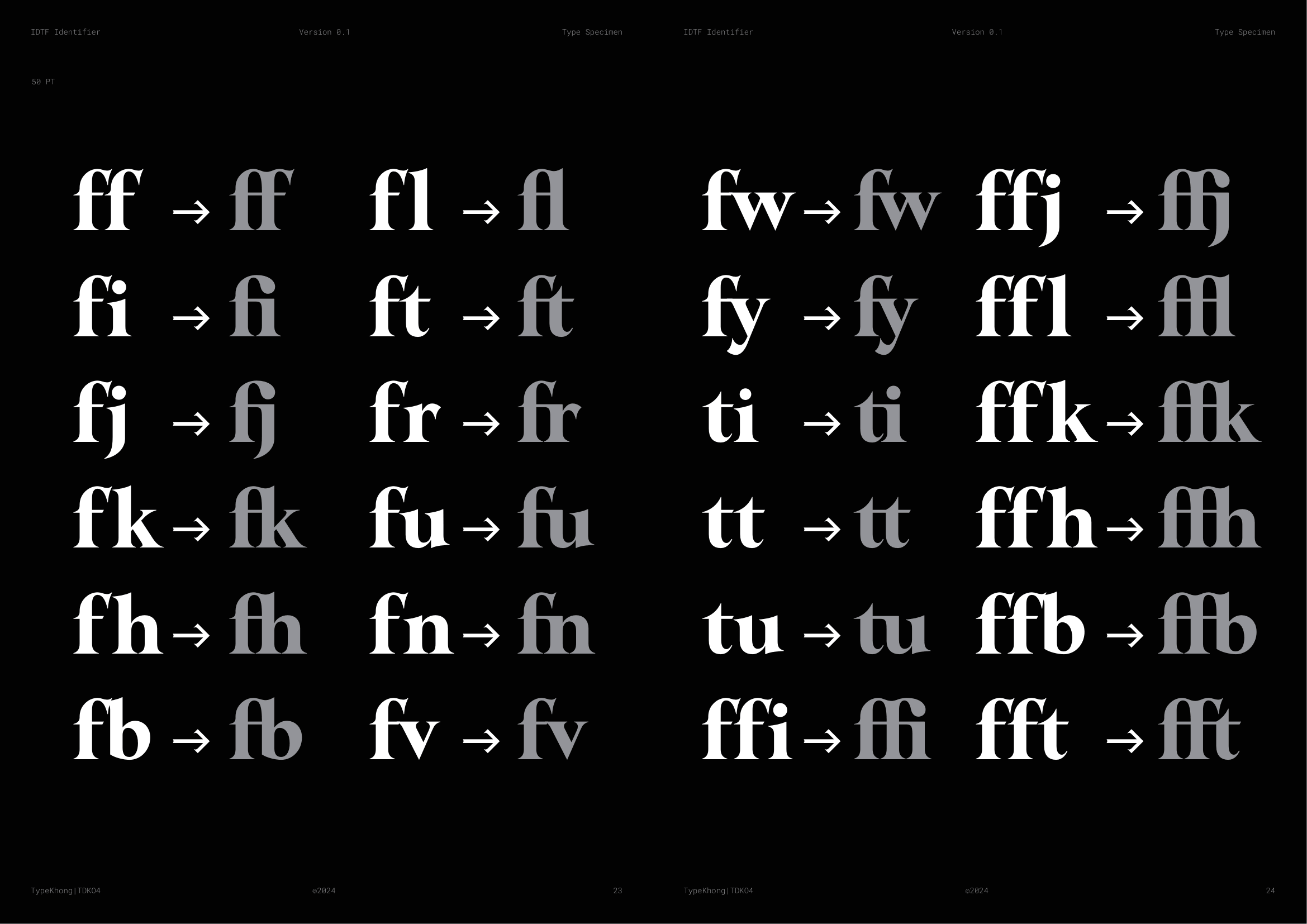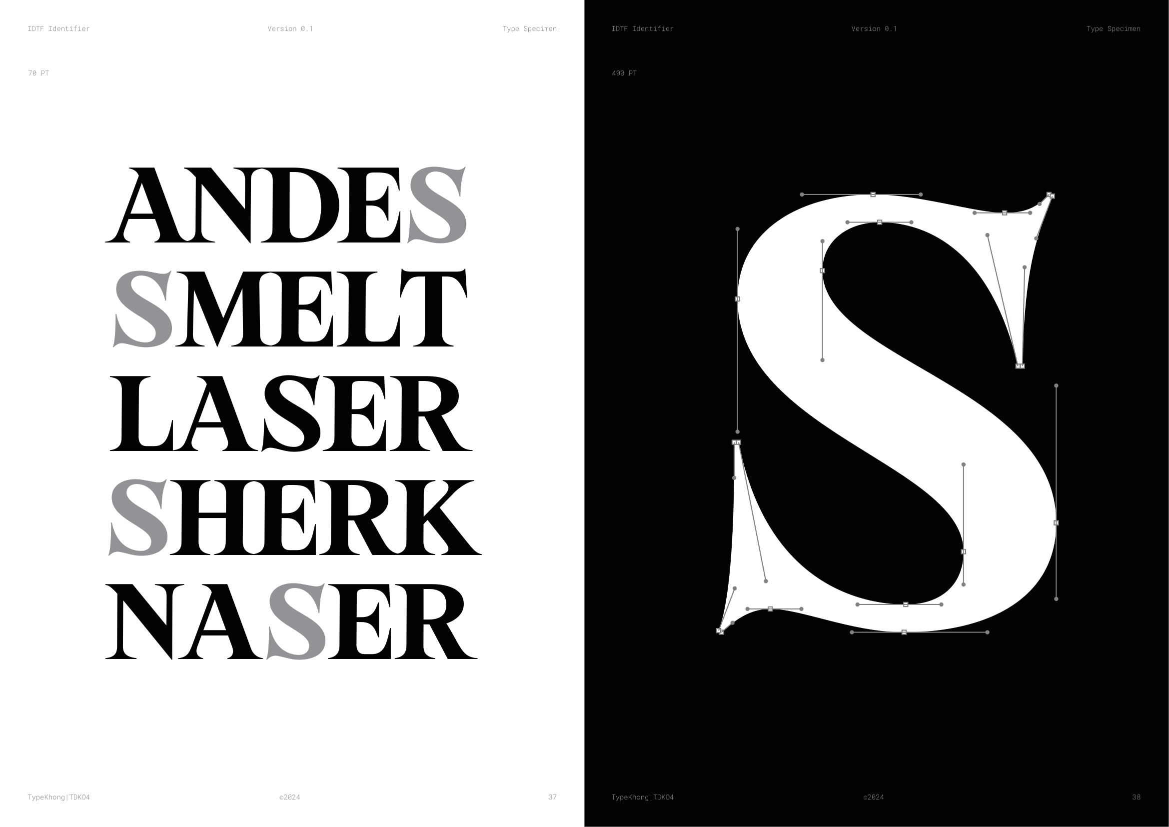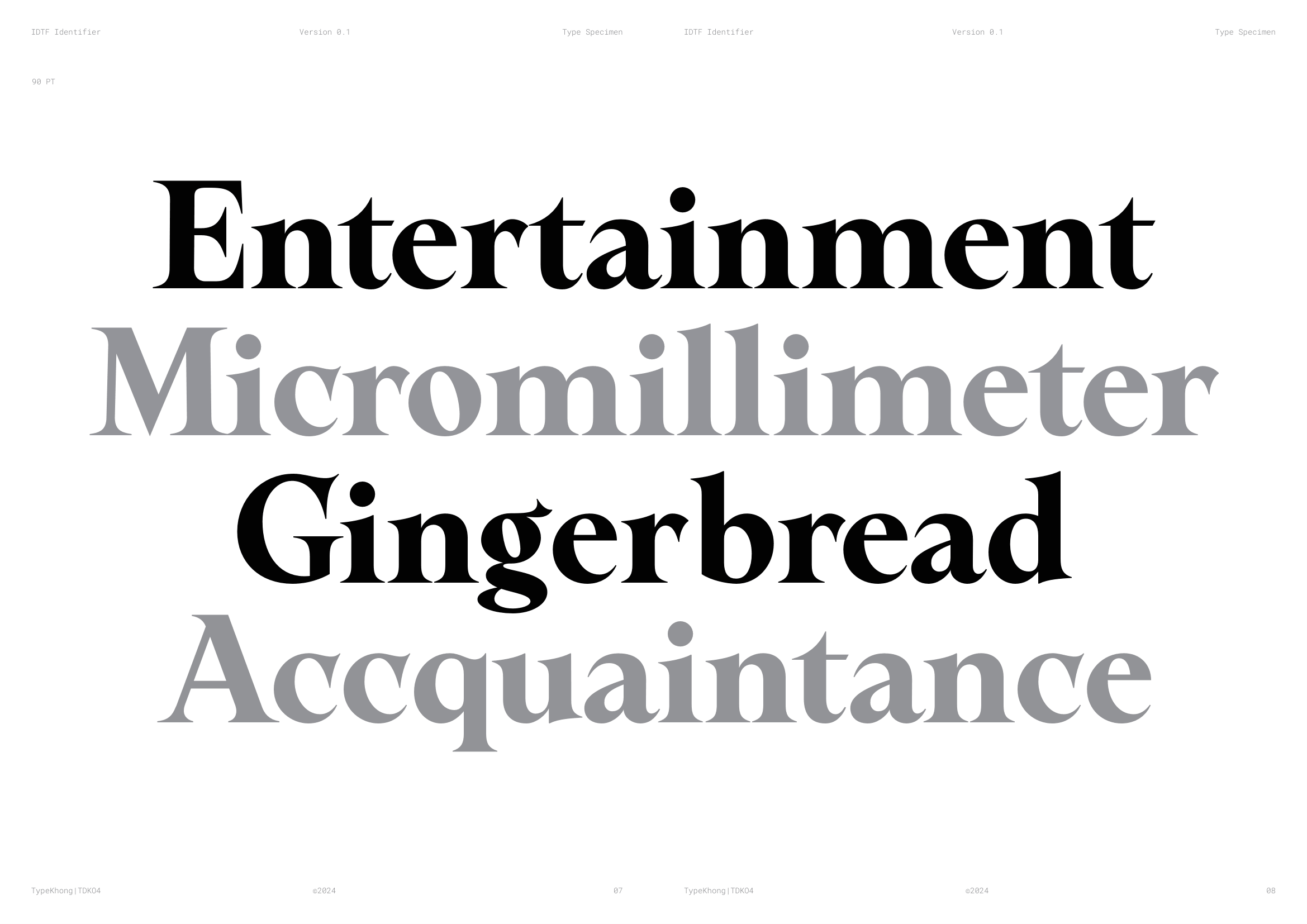 Về PKT Identifier: Identifier là một kiểu chữ phục dựng từ Laureate Bold, dòng transitional serif với dáng serif như ống loe. Laureate được khắc lần đầu bởi Keystone Type Foundry tại Philadelphia, PA, vào đầu những năm 1900, dùng cho các tiêu đề khổ lớn. Lấy cảm hứng từ những tiêu đề serif đậm, chặt chẽ của thời đại phóng khoáng ấy, Identifier ra đời với mục đích phục dựng bộ chữ, tinh chỉnh các nét, khắc phục những điểm yếu của font cũ. Sau đó bổ sung đầy đủ bộ dấu tiếng Việt theo cách sắc nét và nổi bật hơn.