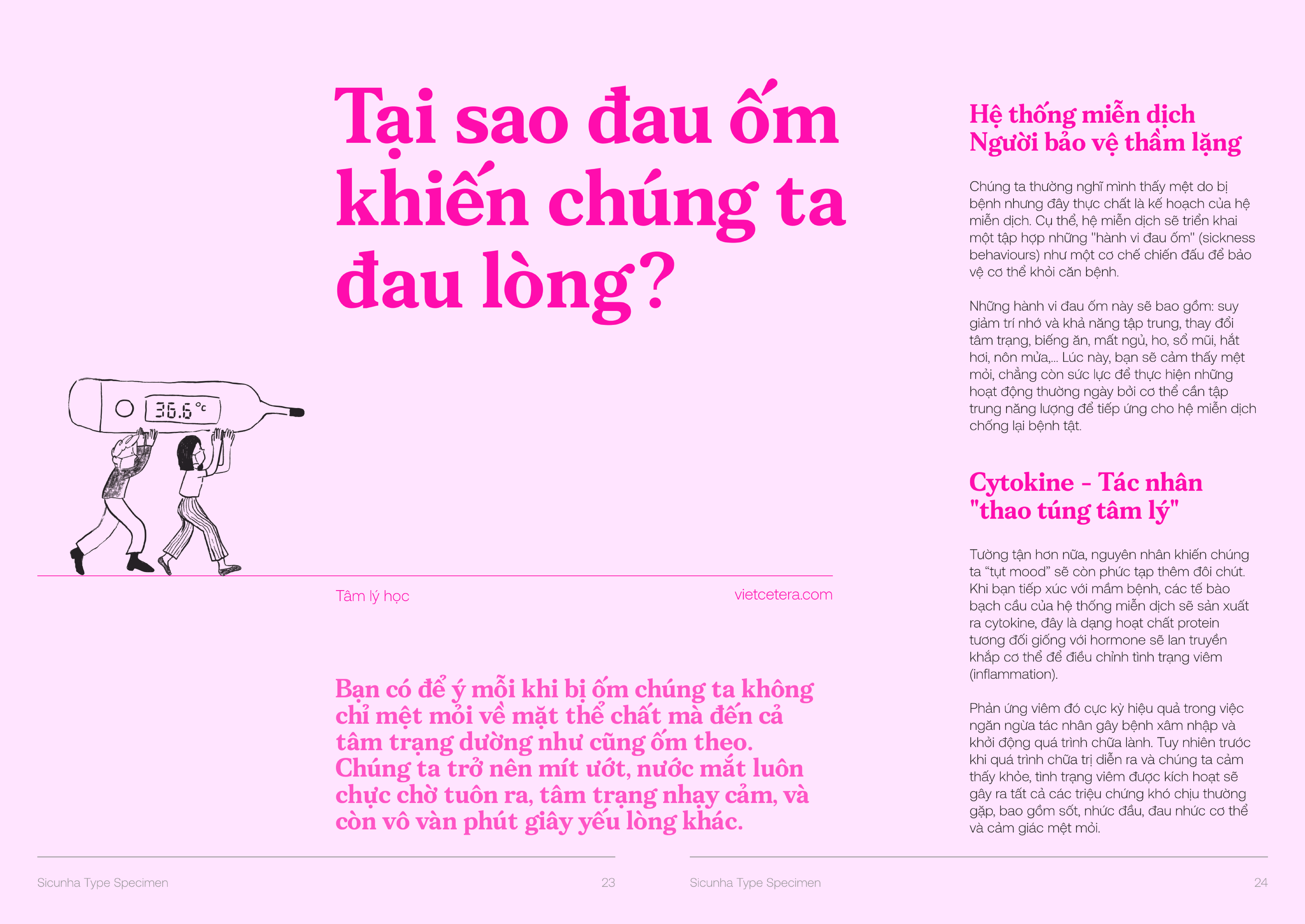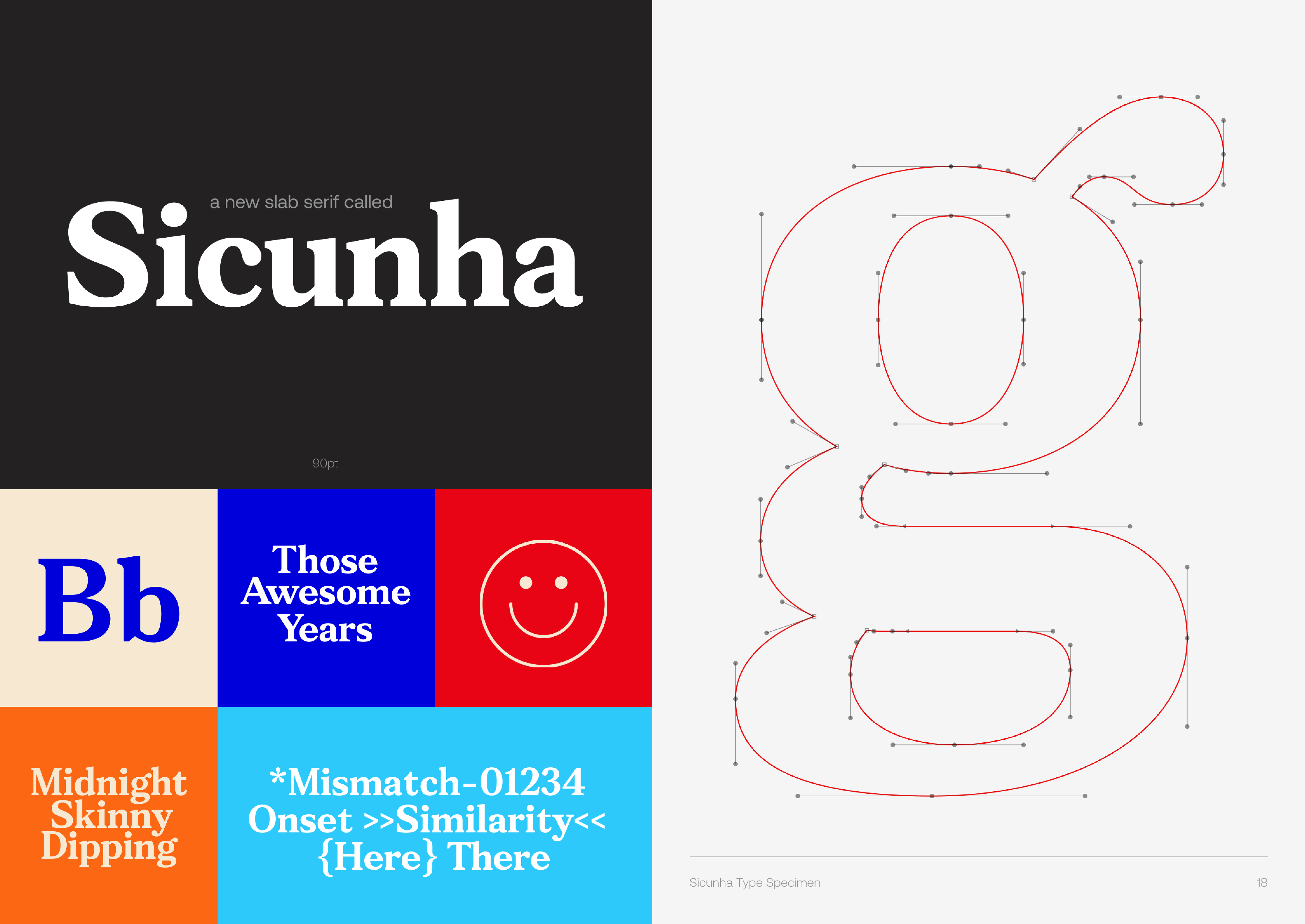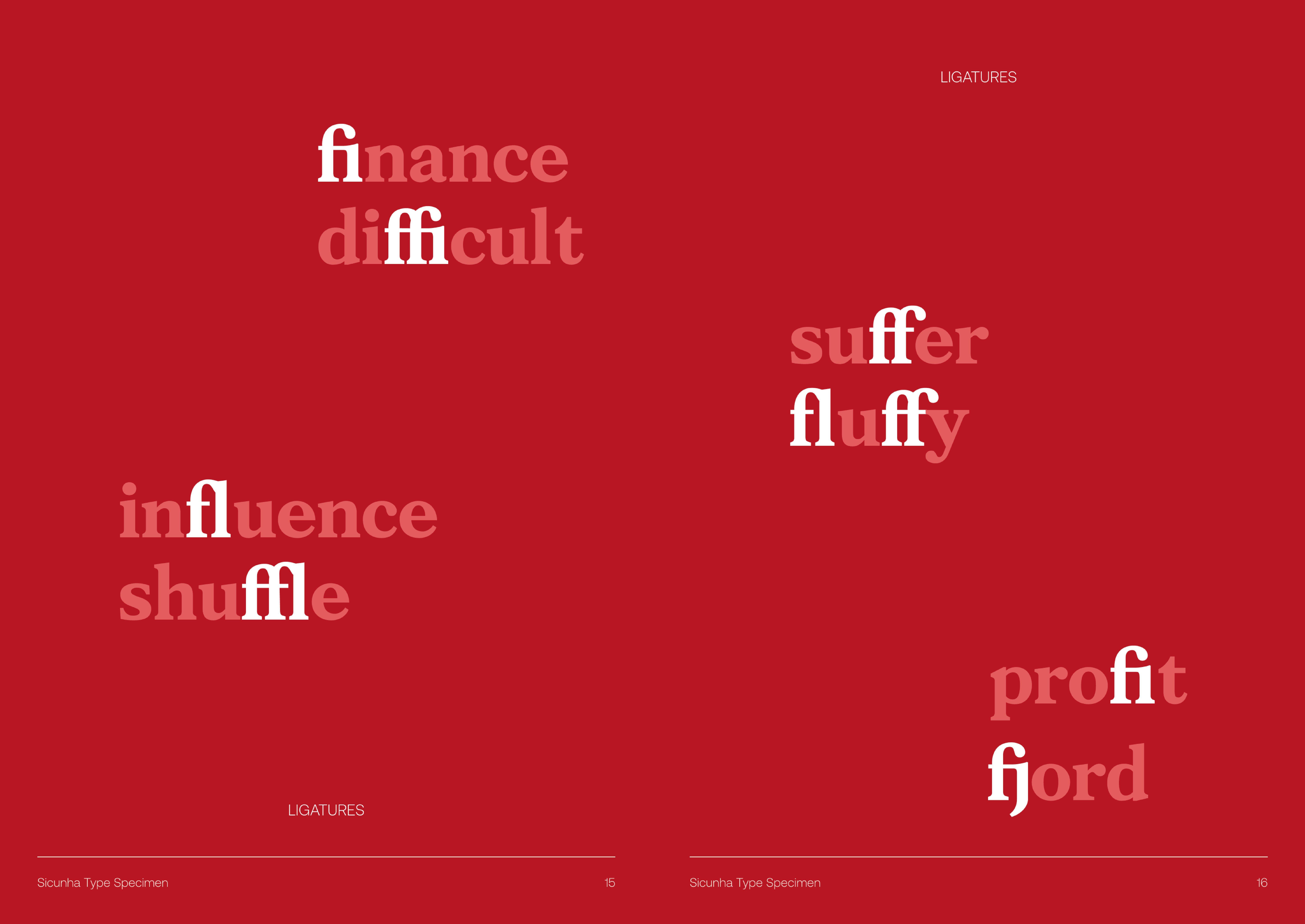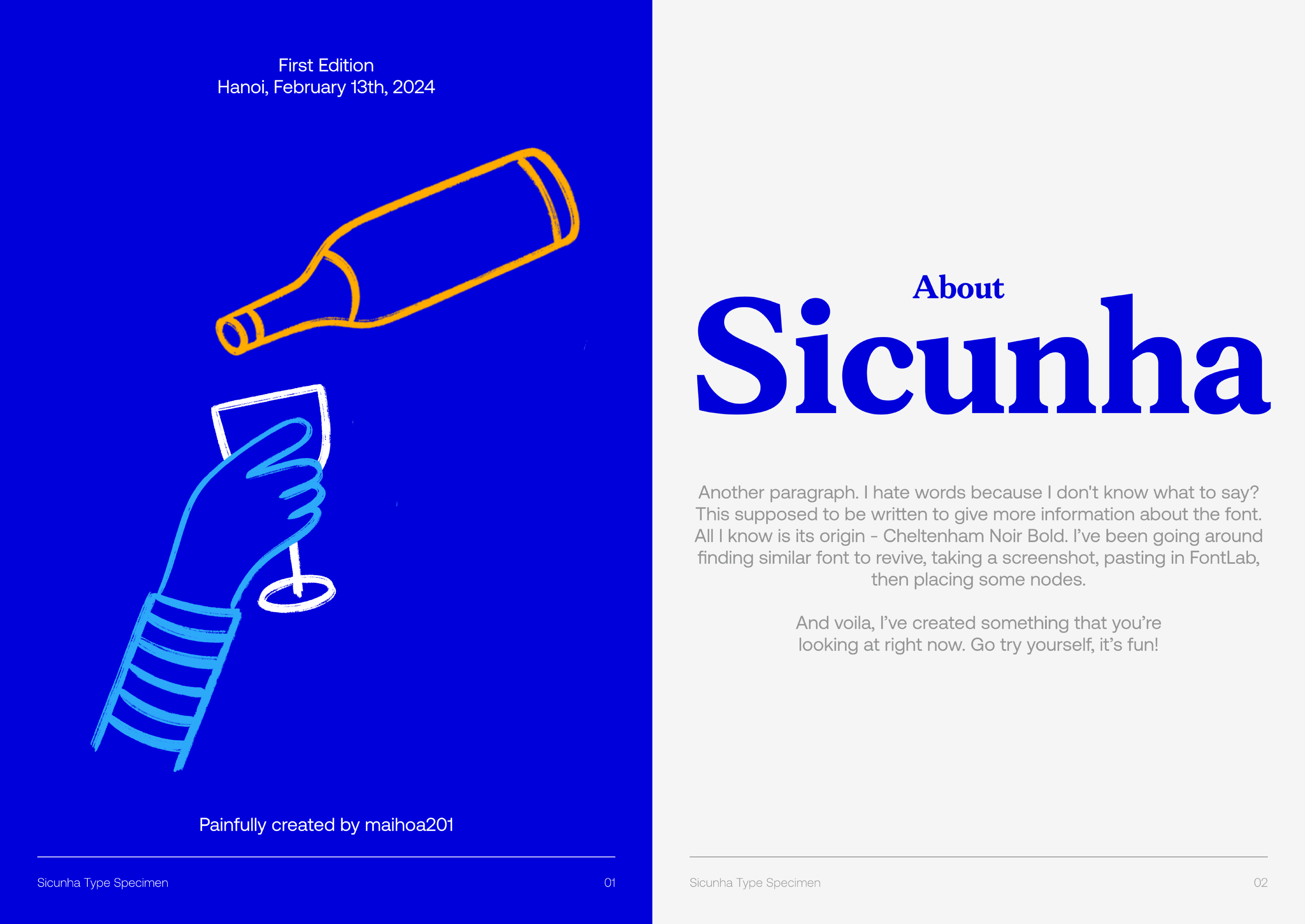 Về Sicunha: Sicunha phục dựng lại bản Bold của Cheltenham. Dáng chữ dày, nét serif cũng dày, Sicunha đọc lên nghe như tiếng chửi cọc cằn cục mịch như tạo hình serif của chính nó. Cơ mà là sự chân thành từ một trái tim đầy đặn và nhân ái.