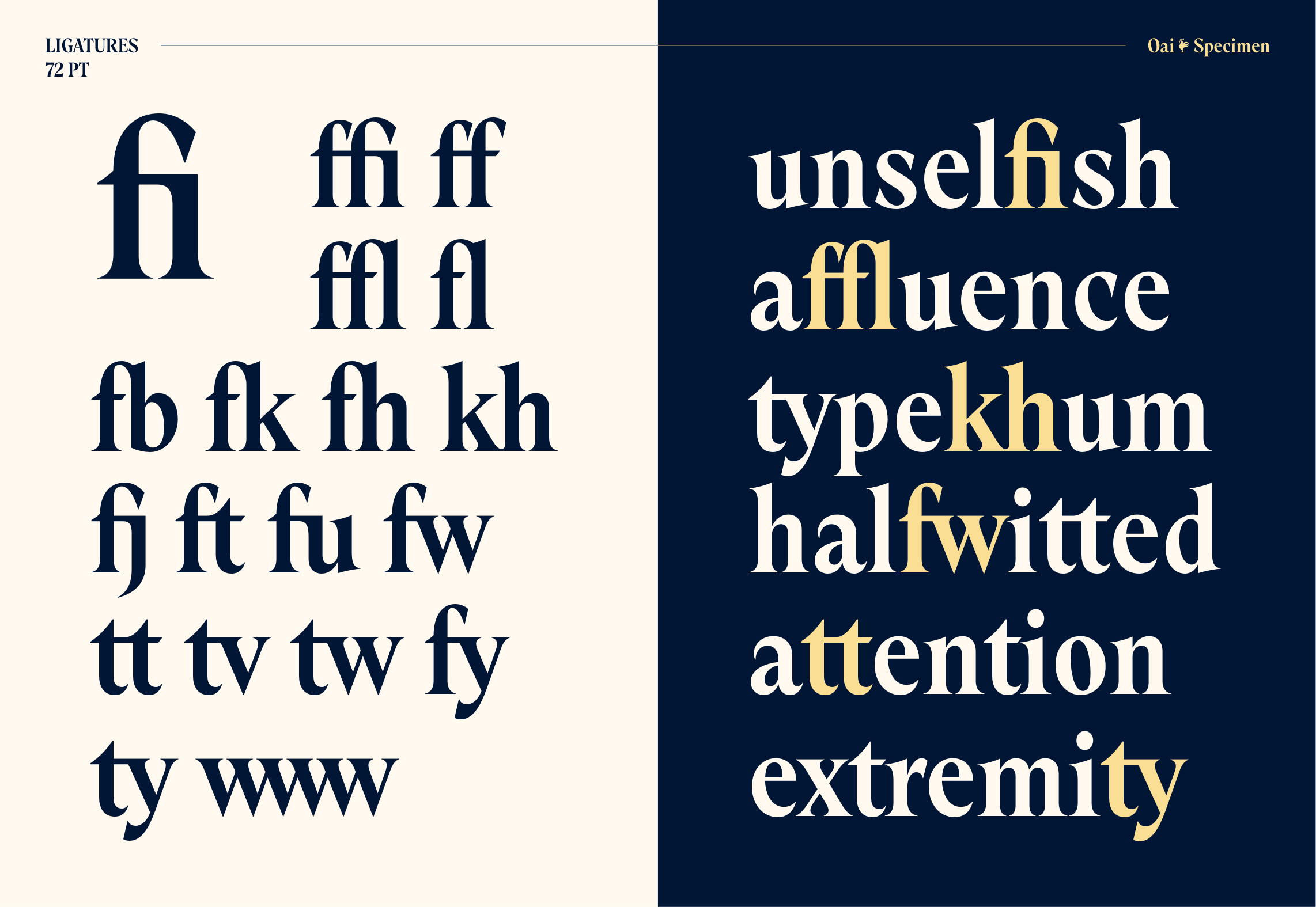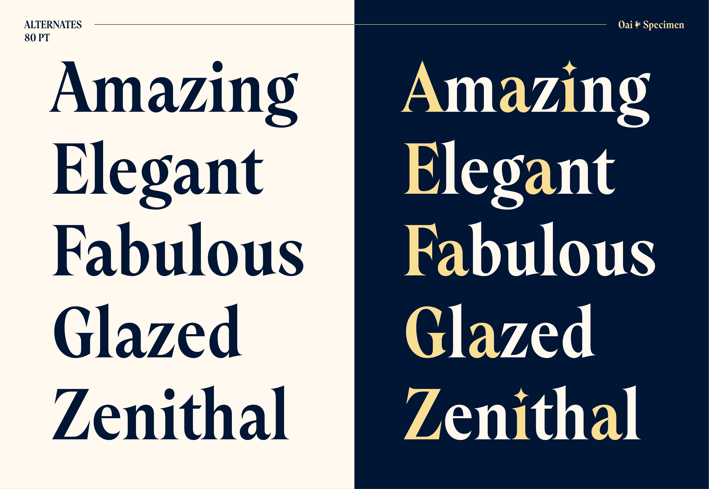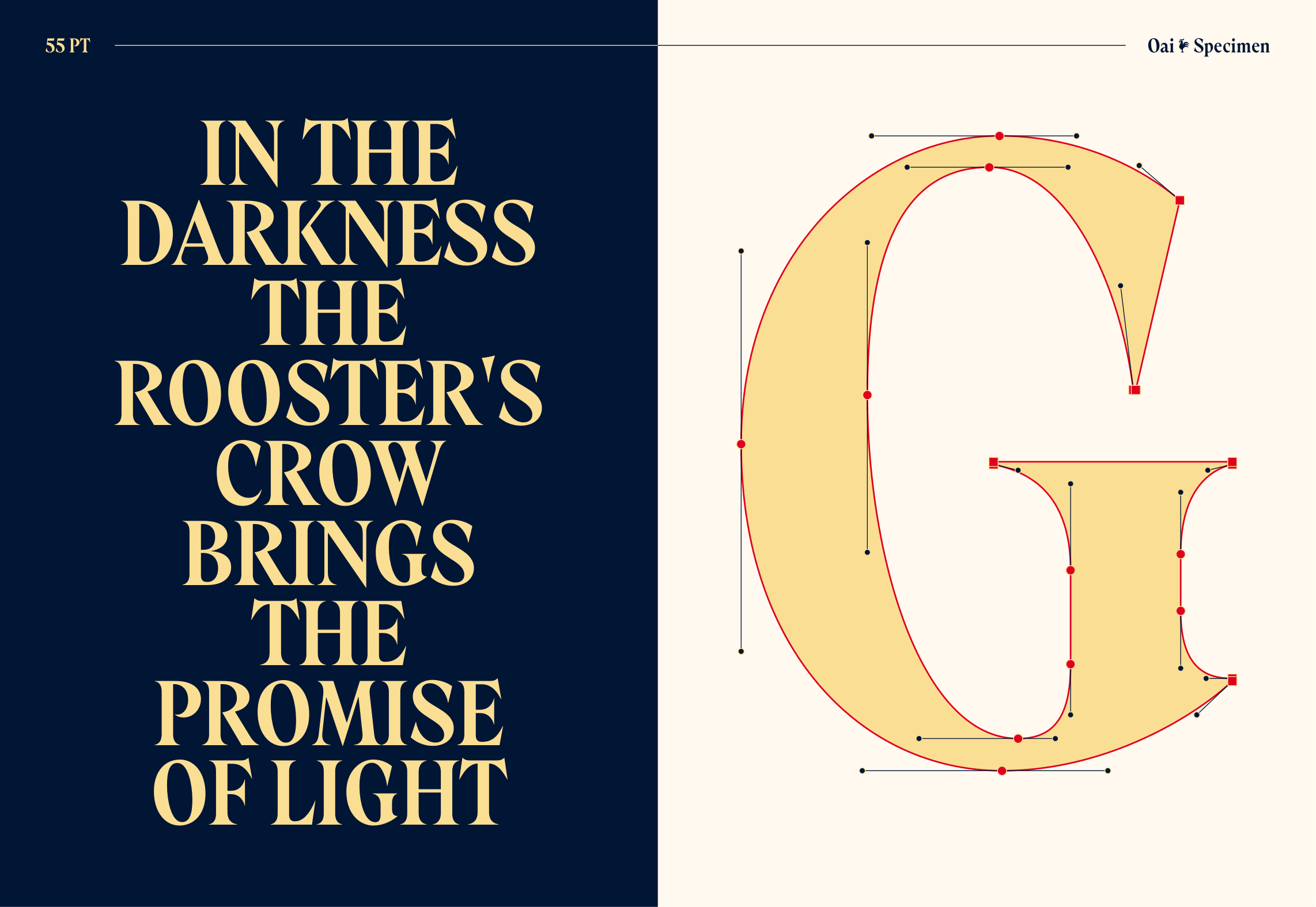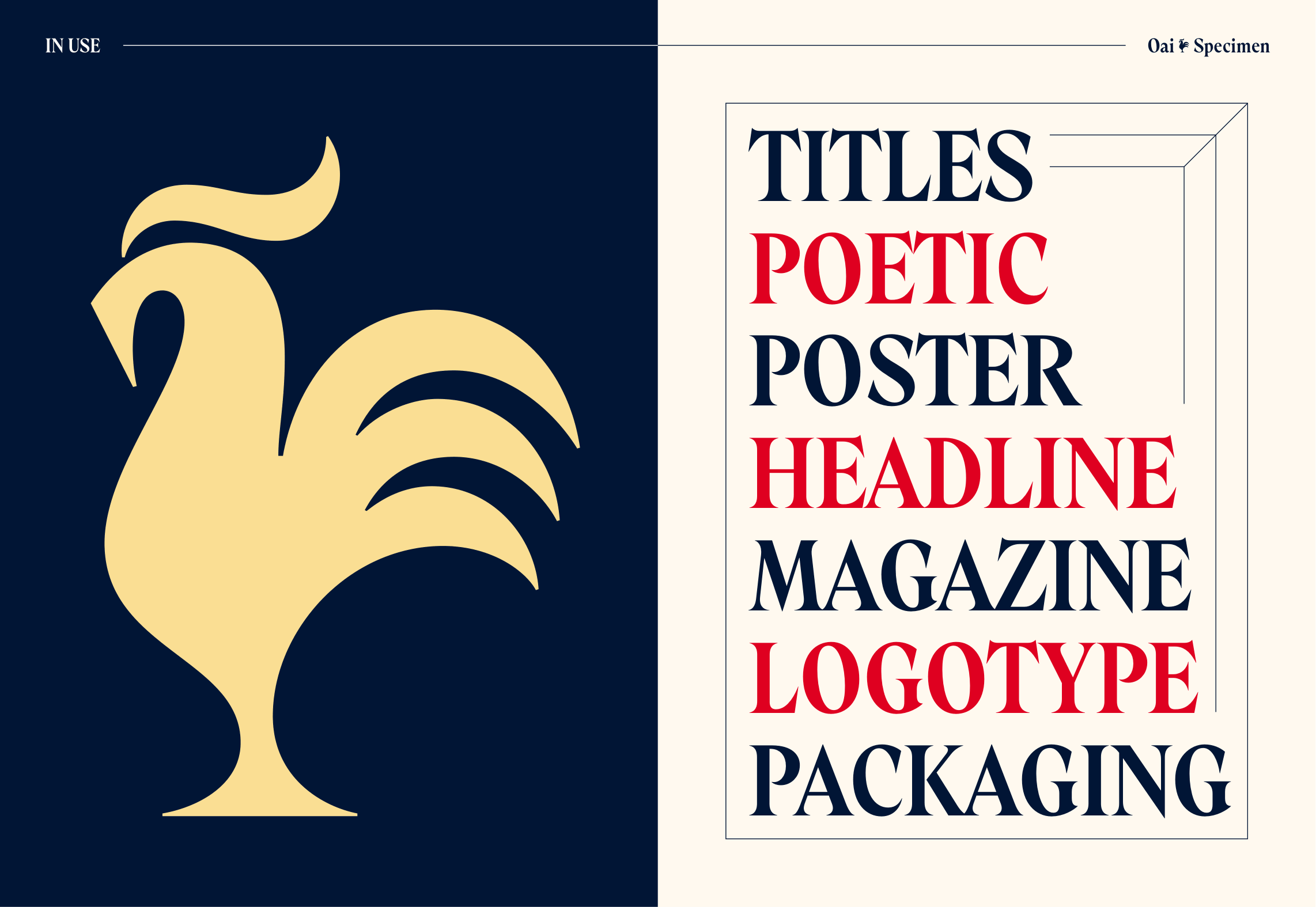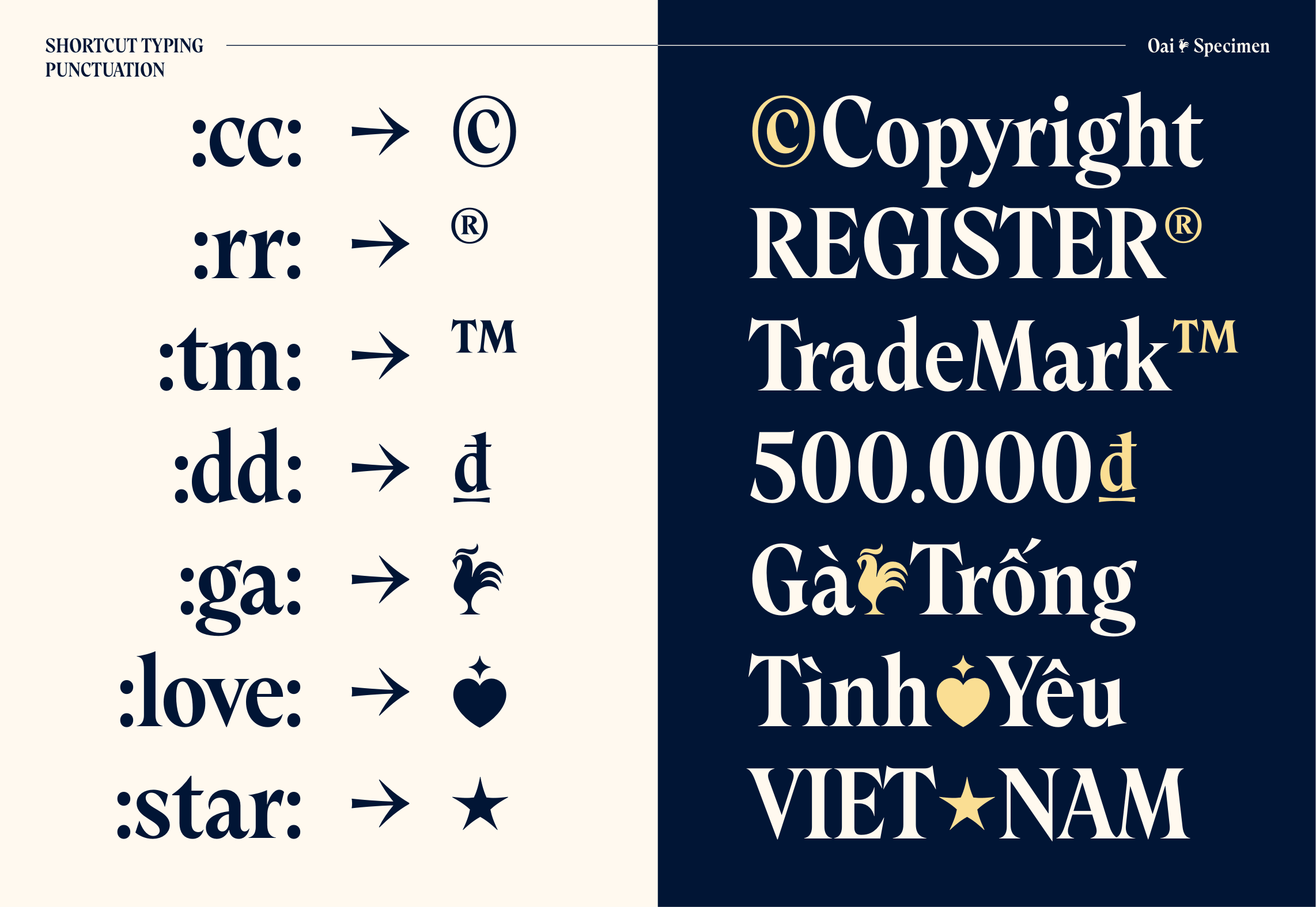 Về TVH Oai Display: OAI là kiểu chữ serif display mang tinh thần humanist, lấy cảm hứng từ Laureate — một kiểu chữ được phát triển bởi Keystone Type Foundry tại Philadelphia vào năm 1901. Nổi bật với thiết kế serif loe, chắc khỏe cùng độ mở không gian âm lớn, Laureate chủ yếu được sử dụng cho tiêu đề và các dòng chữ lớn.
