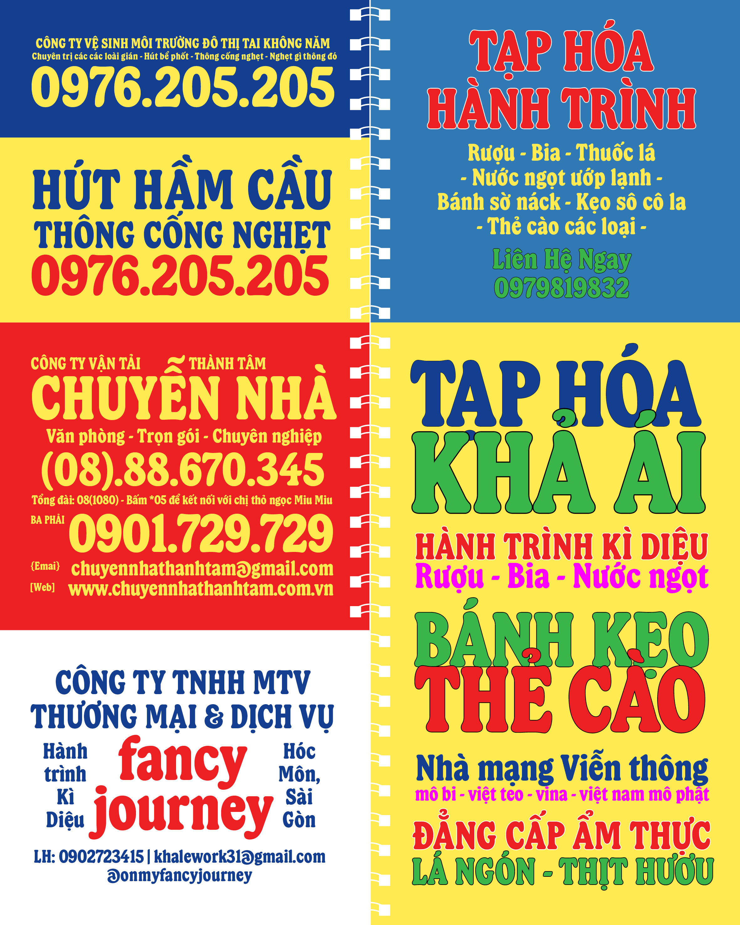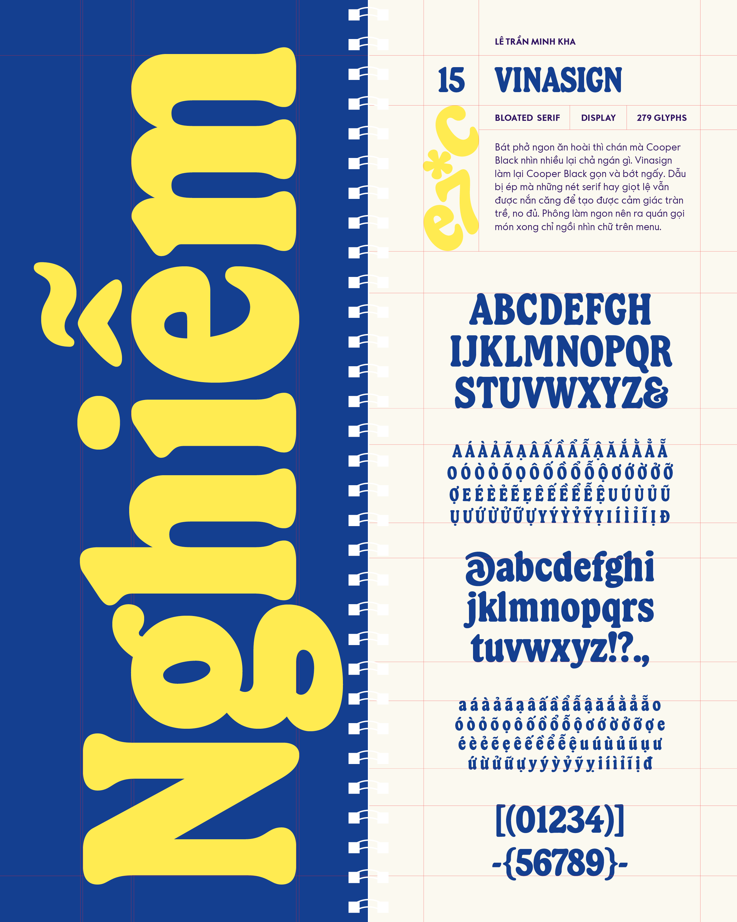 Về Vinasign: Bát phở ngon ăn hoài thì chán mà Cooper Black nhìn nhiều lại chả ngán gì. Vinasign làm lại Cooper Black gọn và bớt ngấy. Dẫu bị ép mà những nét serif hay giọt lệ vẫn được nắn căng để tạo được cảm giác tràn trề, no đủ. Phông làm ngon nên ra quán gọi món xong chỉ ngồi nhìn chữ trên menu.